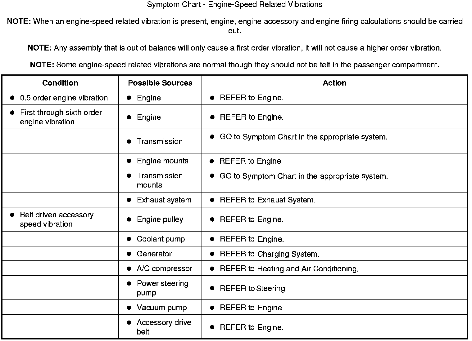 Symptom Chart - Engine-Speed Related Vibrations: