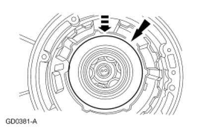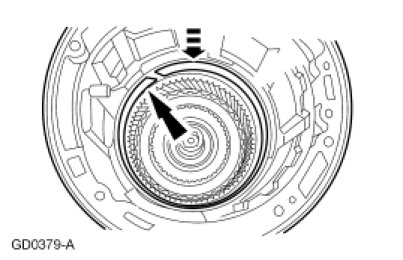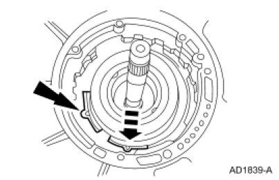 20. Verify the tip of the piston assembly engages the pocket of the O/D band.