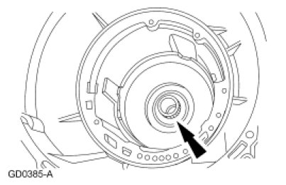 11. NOTE: When installing the center support retaining ring the opening of the center support retaining ring should be toward the hole in the case where the Turbine Shaft Speed (TSS) sensor would go.