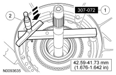 2. Maintaining downward pressure, use a depth micrometer to measure and verify intermediate clutch clearance is within specification.