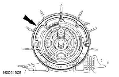 10. NOTE: The planet support spring must be compressed and installed below the snap ring groove. When the planet support spring is installed correctly, both ends of the spring will be visible.