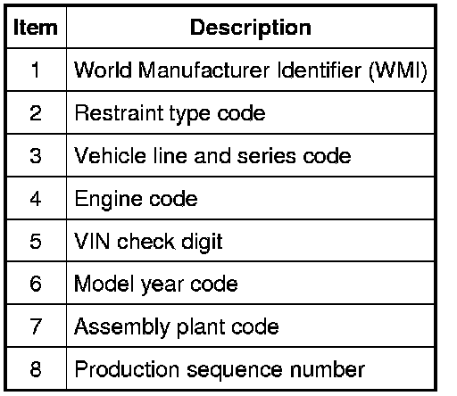 The ninth VIN position is the check digit code (0-9).