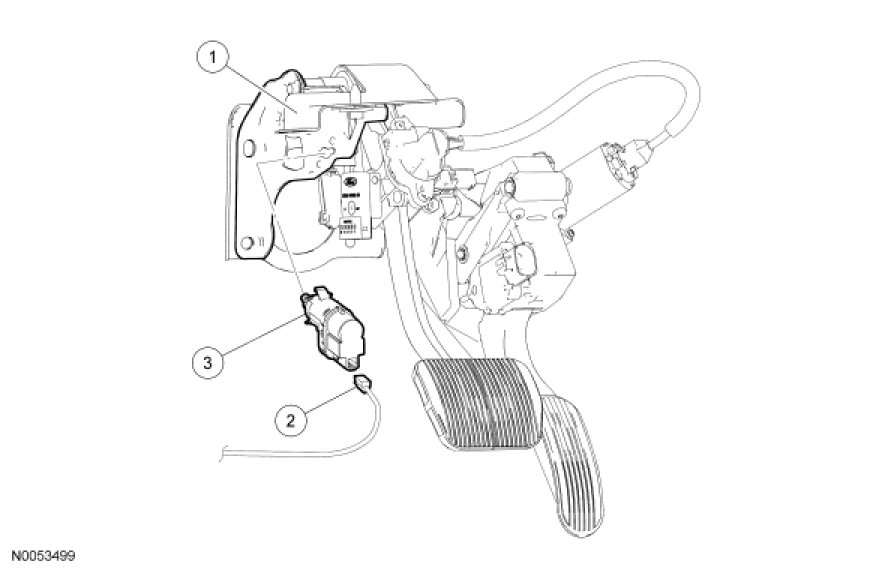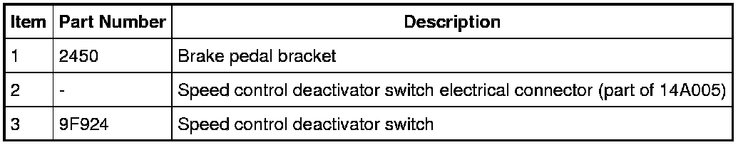 NOTICE: Do not press the pedal when removing or installing the speed control deactivator switch, as the switch will be damaged.