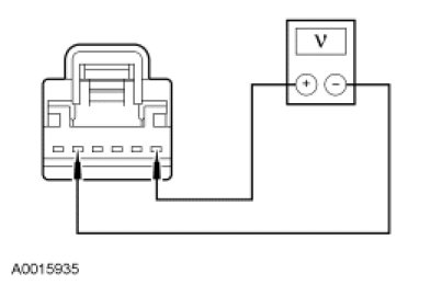 - Measure the voltage between solar radiation sensor C287-1, circuit 476 (BN/YE), harness side and C287-5, circuit 676 (PK/OG), harness side.