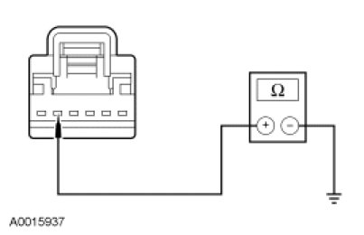- Measure the resistance between solar radiation sensor C287-5, circuit 676 (PK/OG), harness side and ground.