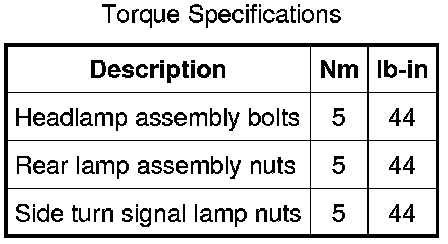 Lighting and Horns: Specifications