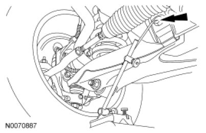 1. Measure the distance between the inner frame reinforcement (Item 2) and the rear axle jounce stop (Item 3) to obtain the rear ride height (Item 1).