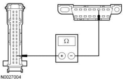 - Measure the resistance between the IC C2220-31, circuit 1828 (PK/LG), harness side and the DLC C251-14, circuit 1828 (PK/LG), harness side.