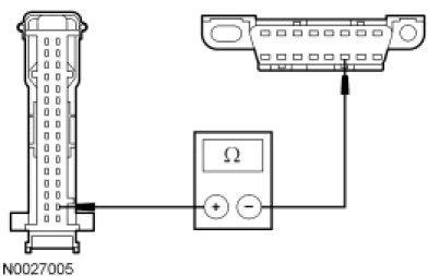 - Measure the resistance between the IC C2220-30, circuit 1827 (WH/LG), harness side and the DLC C251-6, circuit 1827 (WH/LG), harness side.