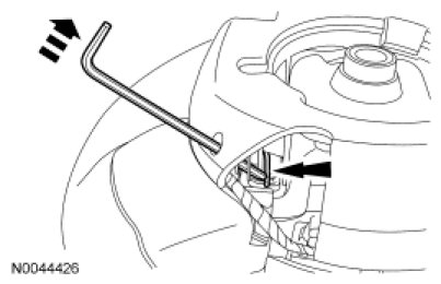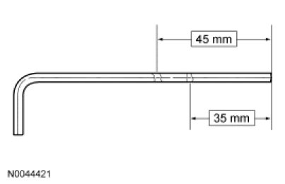 Using a 4 mm (0.15 in) Allen wrench or suitable tool, place 2 marks on the tool as an aid to remove the driver air bag module. One mark should be approximately 35 mm (1.37 in) from the end of the tool with the second mark approximately 45 mm (1.77 in) from the end of the tool.