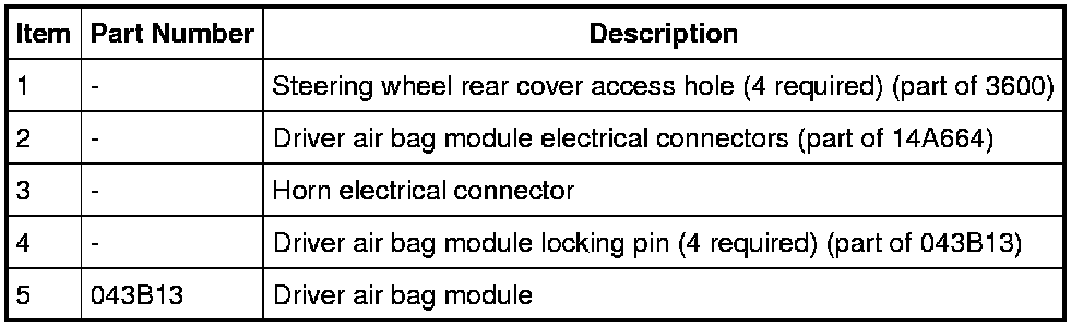 NOTICE: Make sure the steering wheel spring clips retaining the driver air bag module are disengaged from each of the 4 locking pins on the driver air bag module before removing the driver air bag module from the steering wheel. Failure to do so will damage the driver air bag module and steering wheel.