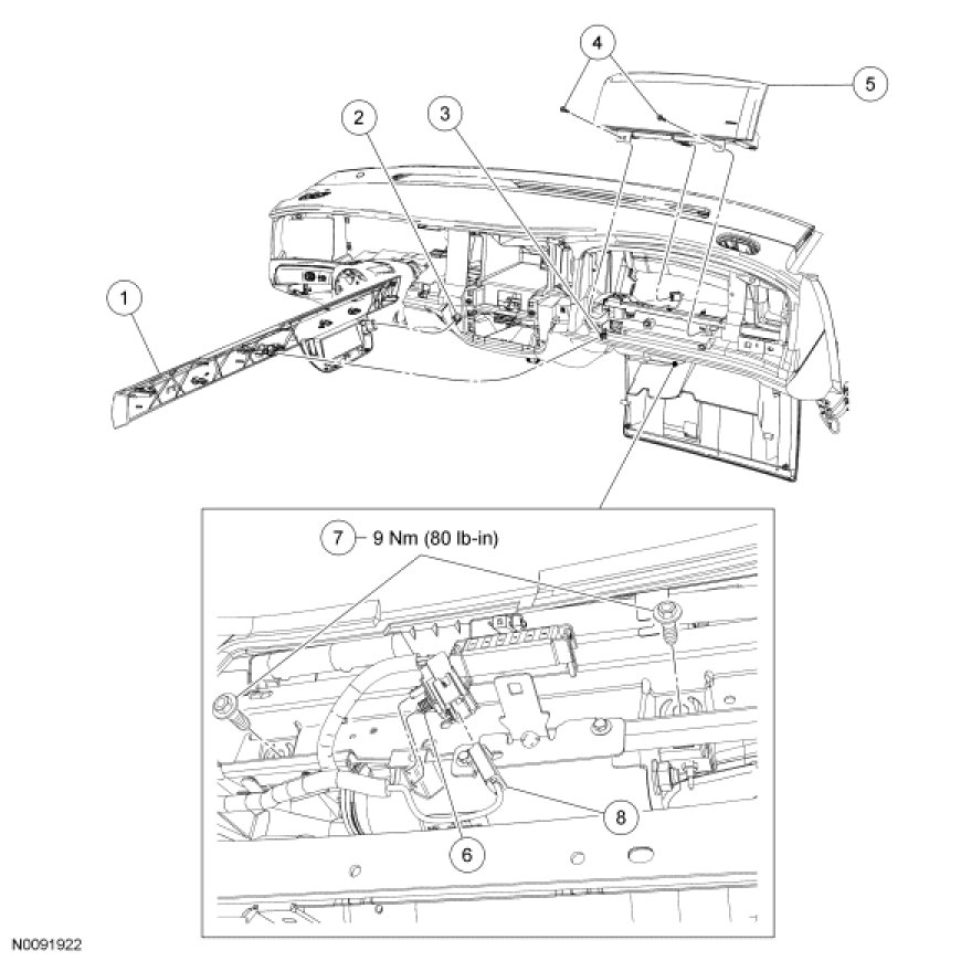 - Slide the RH instrument panel trim panel slightly to the right, aligning the keyway.