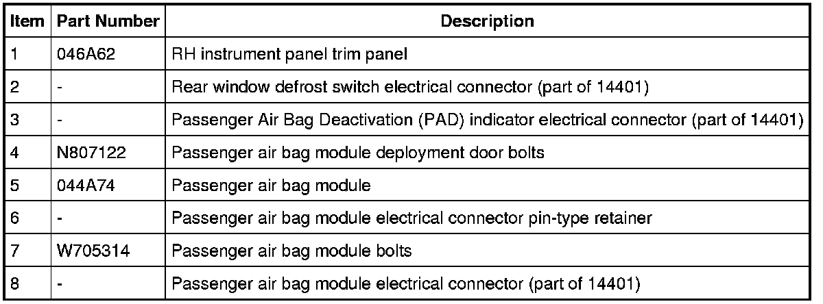 - Disconnect the Passenger Air Bag Deactivation (PAD) indicator.