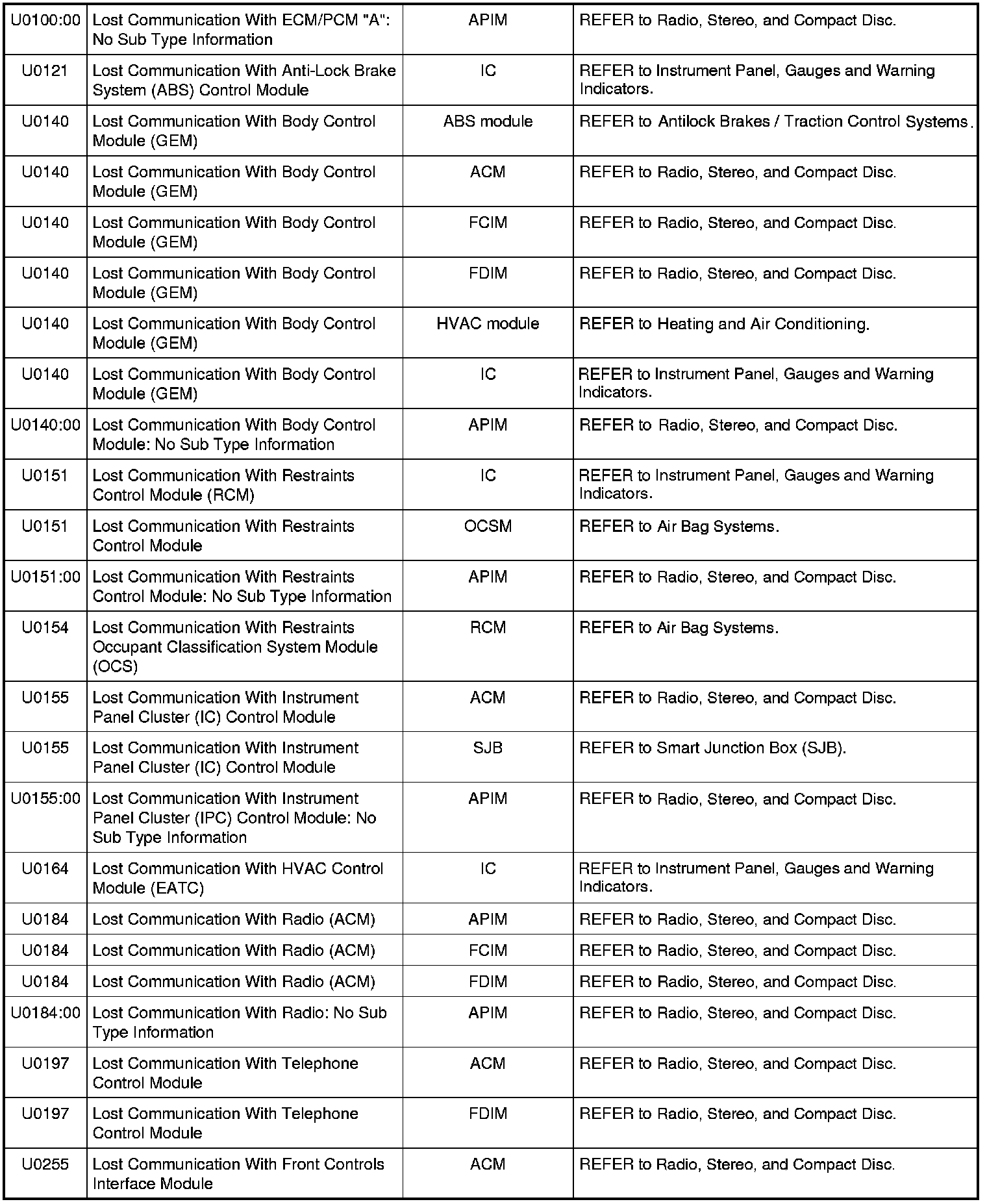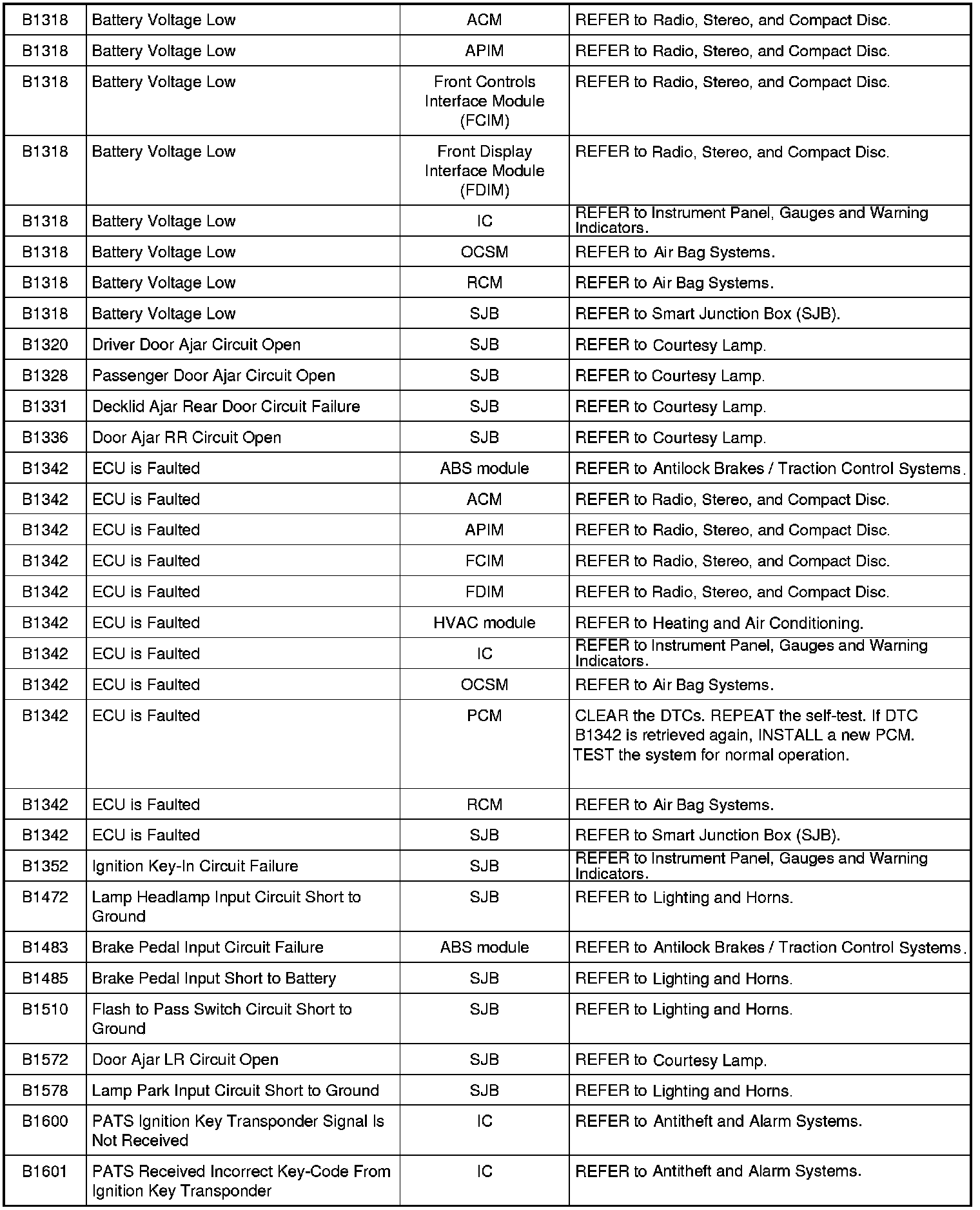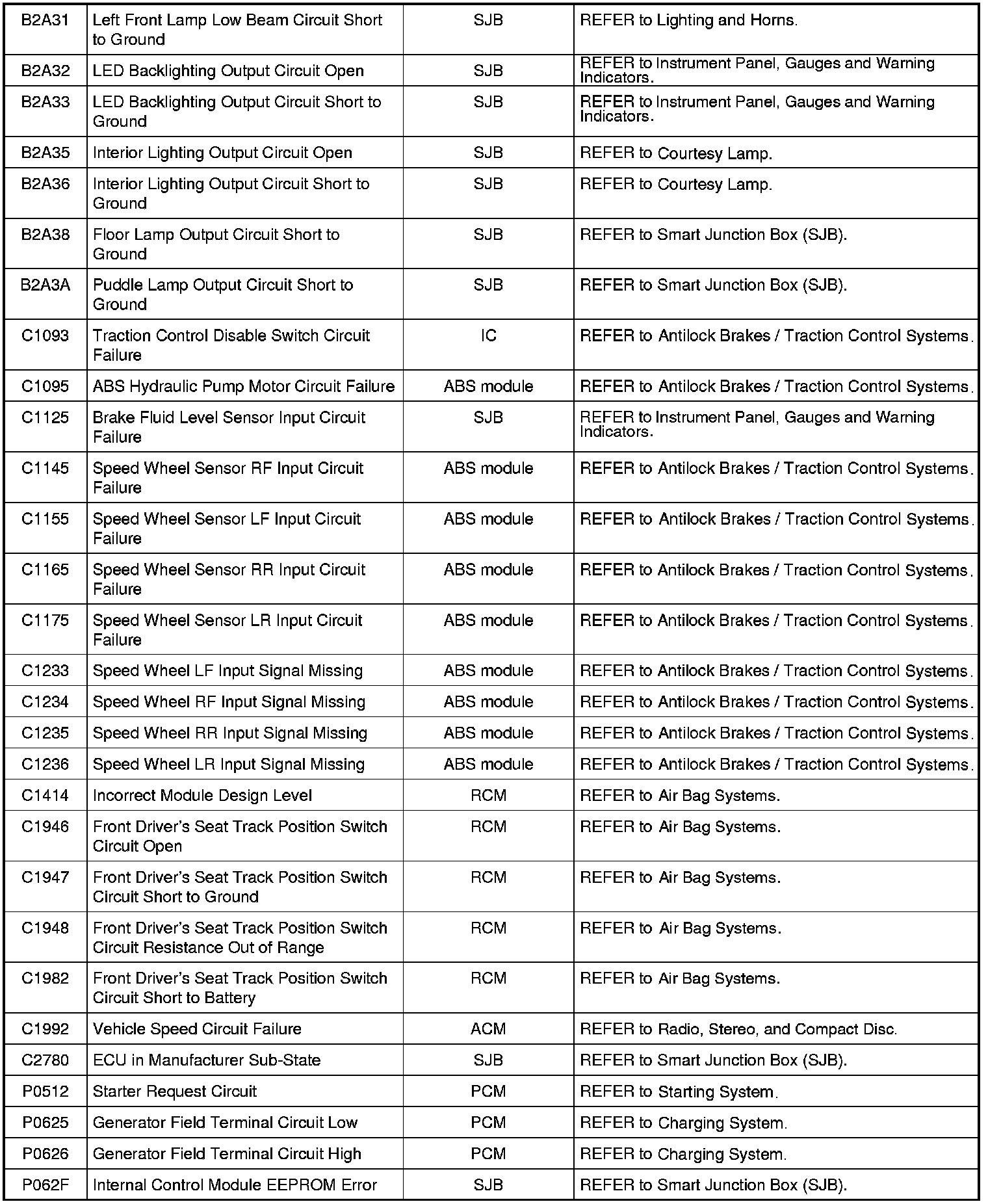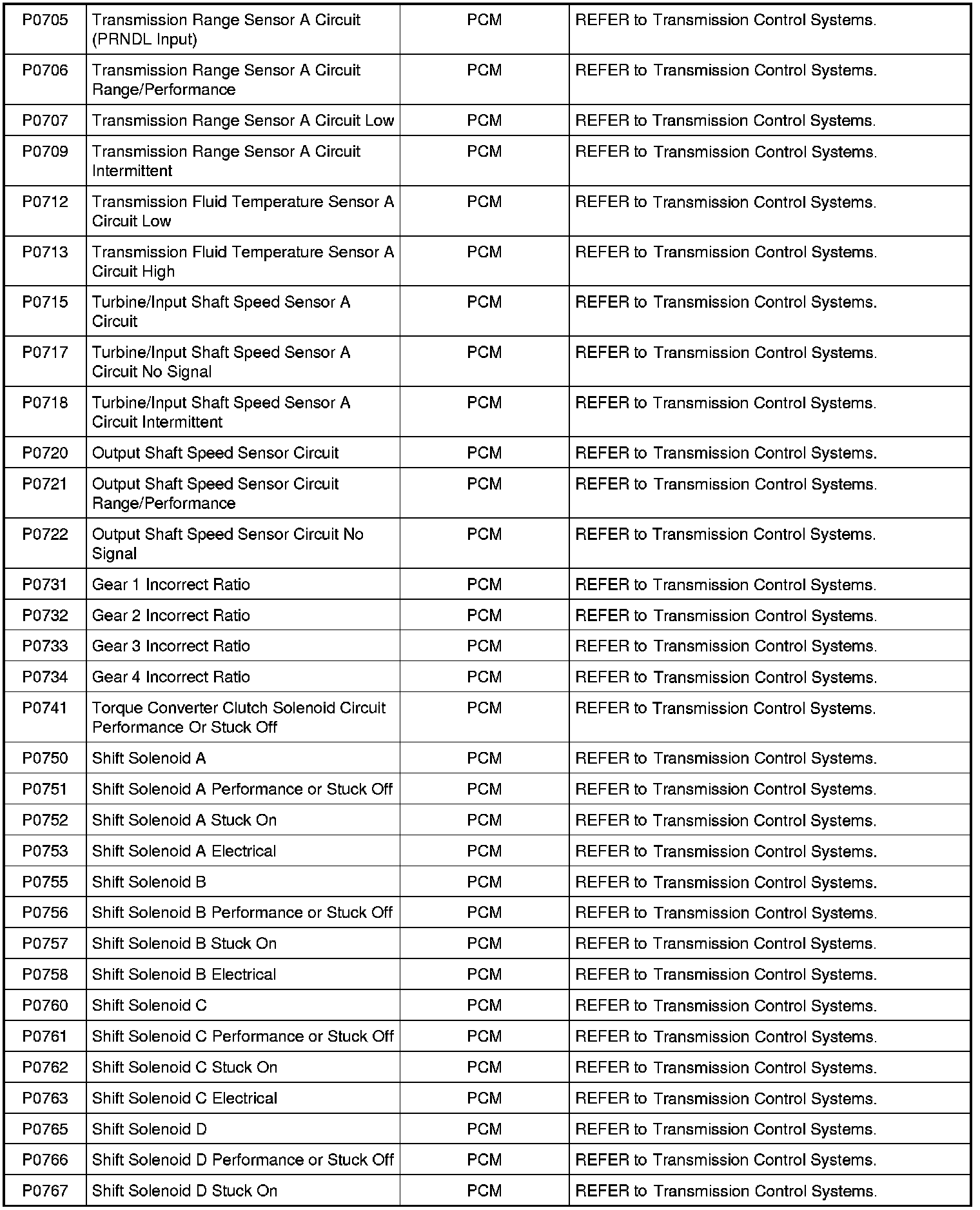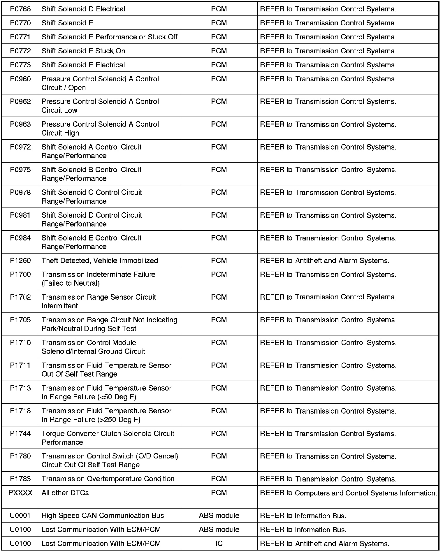 NOTE: Most powertrain (P-code) DTCs are diagnosed in the Computers and Control Systems Information. If the P-code retrieved is not listed below, refer to the Computers and Control Systems Information to continue diagnostics.