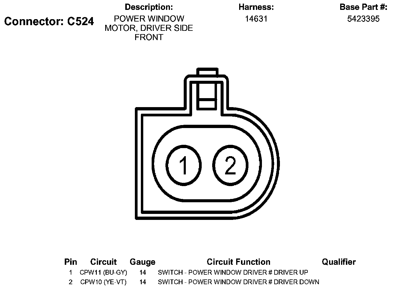 Power Window Motor, Driver Side Front