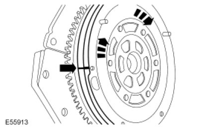 14. Place a reference mark on the secondary mass of the dual mass flywheel.