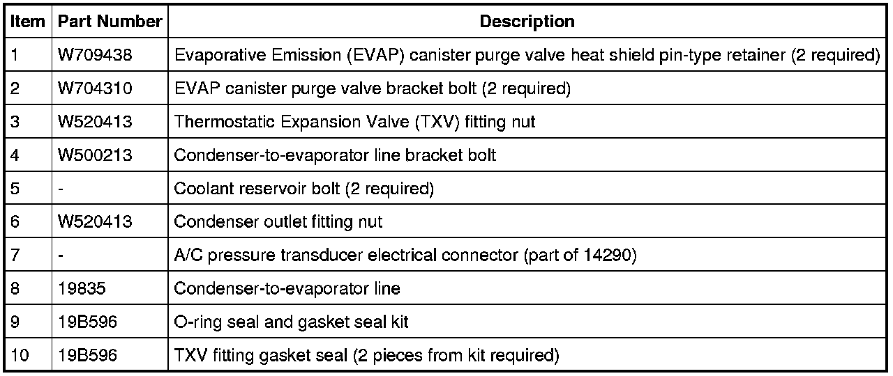 9. Remove the condenser-to-evaporator line bracket bolt at the RH shock tower.