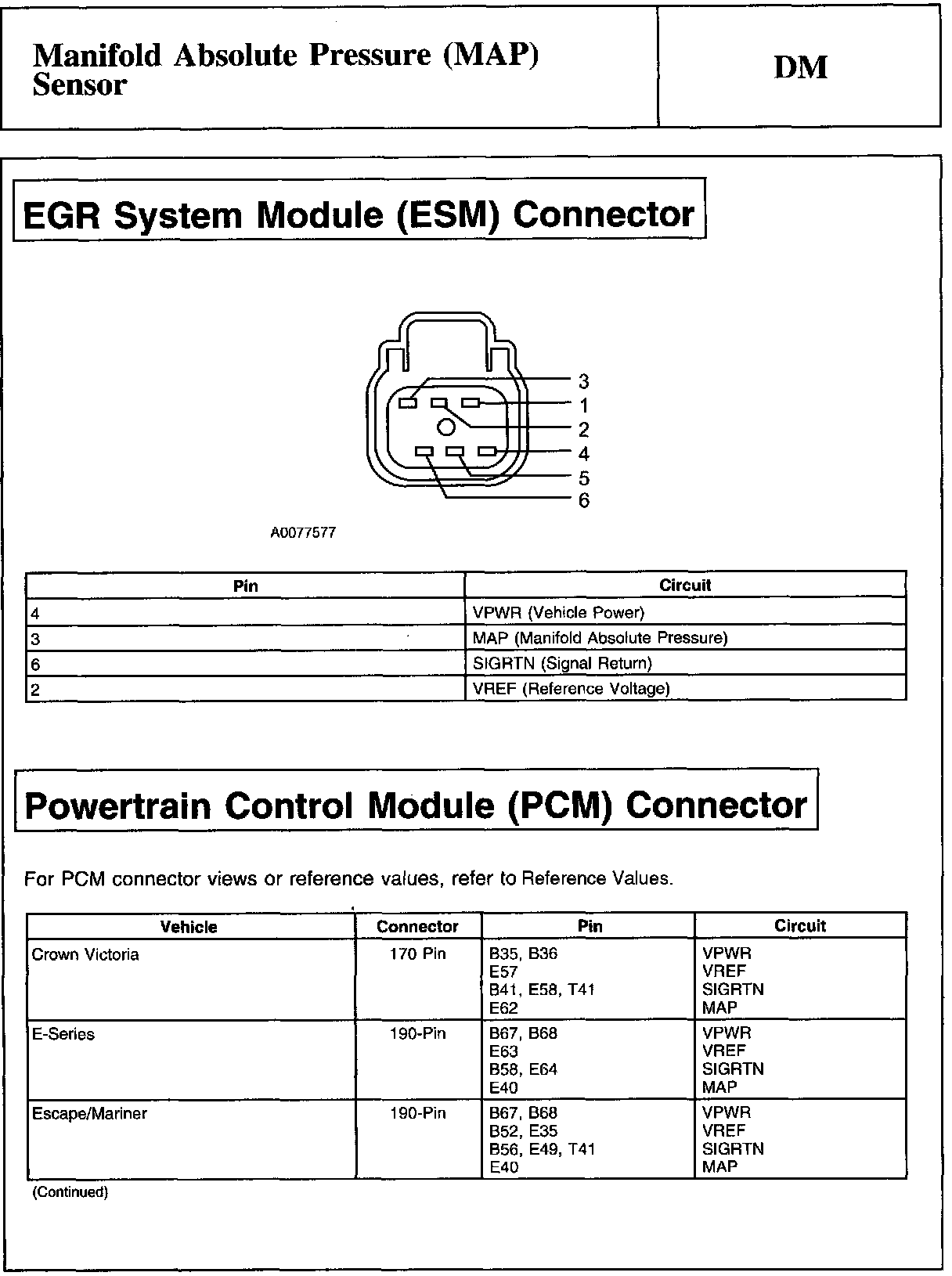 PINPOINT TEST DM: MANIFOLD ABSOLUTE PRESSURE (MAP) SENSORManifold Absolute Pressure Sensor Connector:
