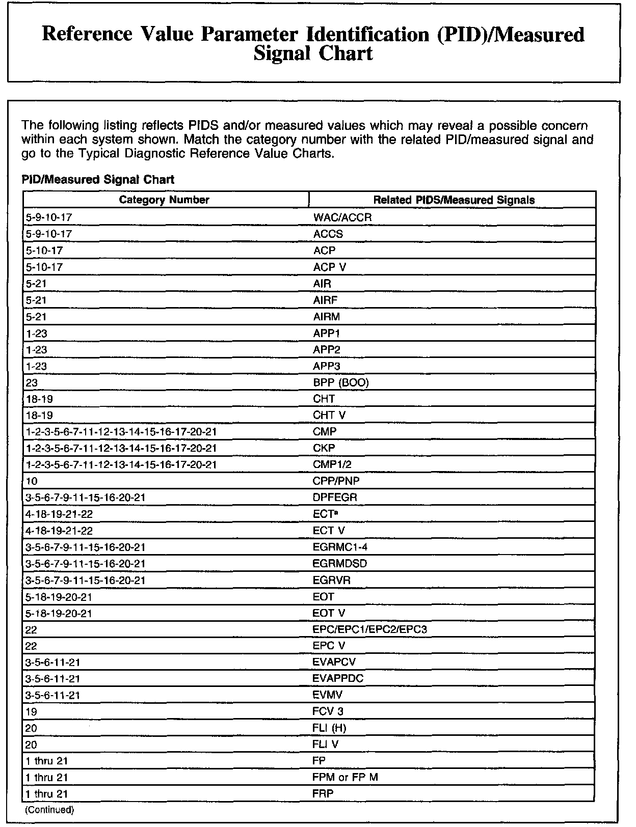 Reference Value Parameter Identification (PID)/Measured Signal Chart
