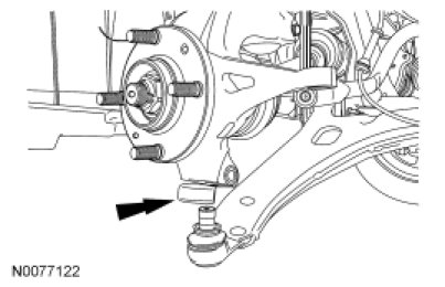 NOTICE: Use care when releasing the lower arm and wheel knuckle into the resting position or damage to the ball joint seal may occur.
