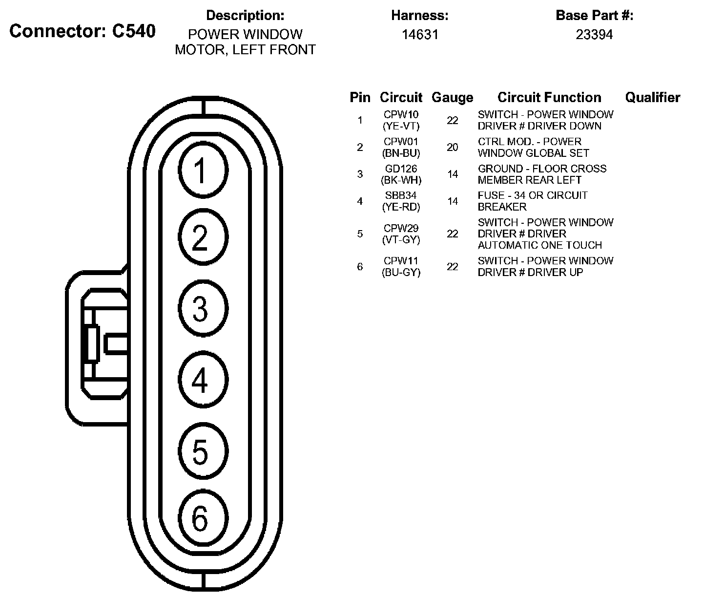 Power Window Motor, Left Front