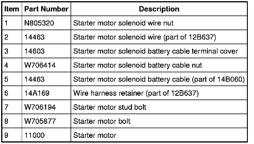WARNING: Always disconnect the battery ground cable at the battery before disconnecting the starter motor battery terminal lead. If a tool is shorted at the starter motor battery terminal, the tool can quickly heat enough to cause a skin burn. Failure to follow this instruction may result in serious personal injury.