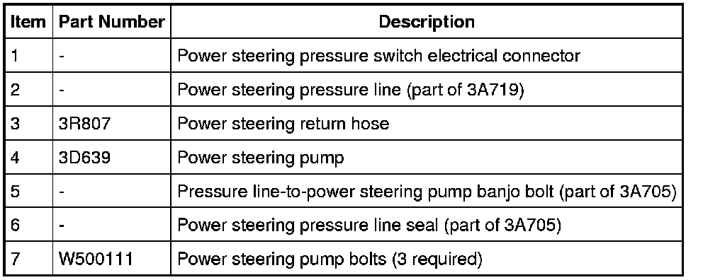7. NOTICE: A new bolt and new seals must be installed any time the power steering pressure line is disconnected from the power steering pump or a fluid leak may occur.
