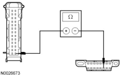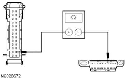 - Measure the resistance between the IC C220-15, circuit VDB04 (WH/BU), harness side and the DLC C251-6, circuit VDB04 (WH/BU), harness side.