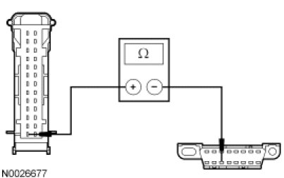 - Measure the resistance between the IC C220-2, circuit VDB06 (GY/OG), harness side and the DLC C251-3, circuit VDB06 (GY/OG), harness side.