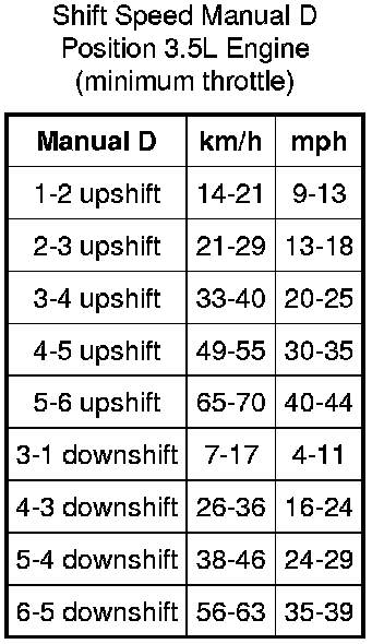 Shift Speed Manual D Position 3.5L Engine (minimum throttle):
