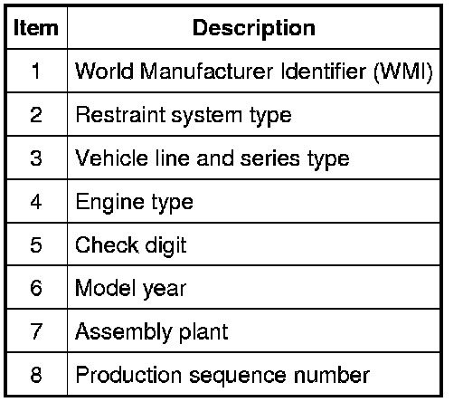 The fourth VIN position identifies the vehicle restraint system used.