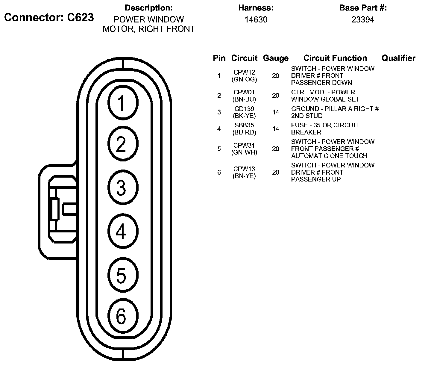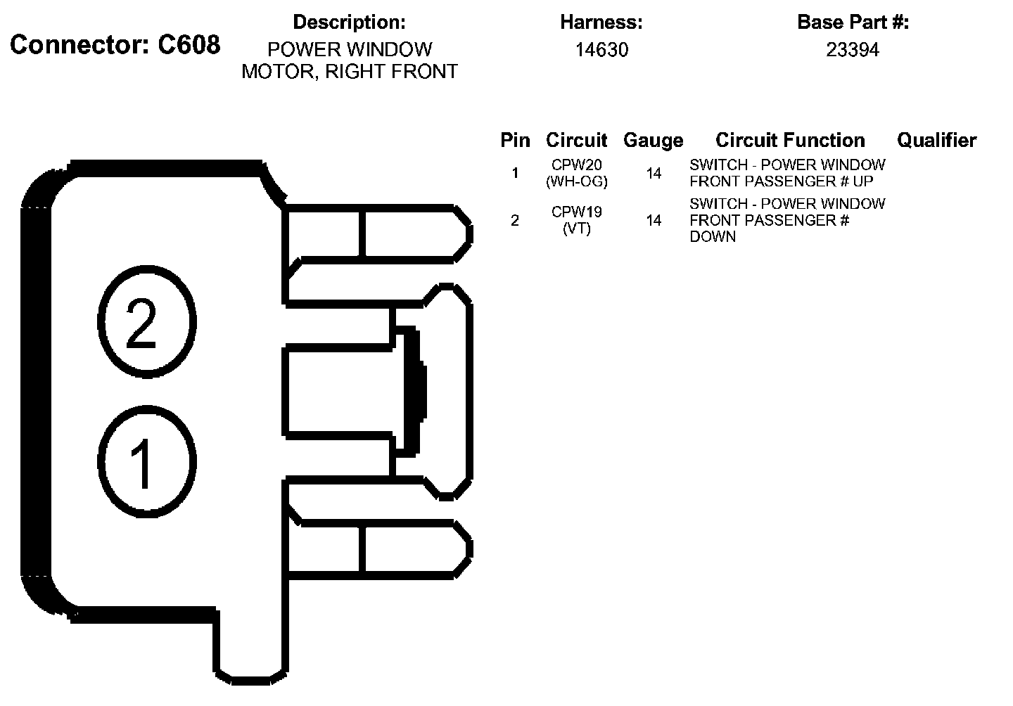 Power Window Motor, Right Front