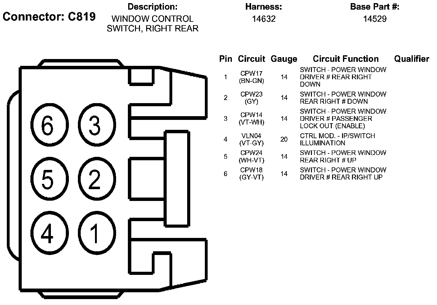 Window Control Switch, Right Rear