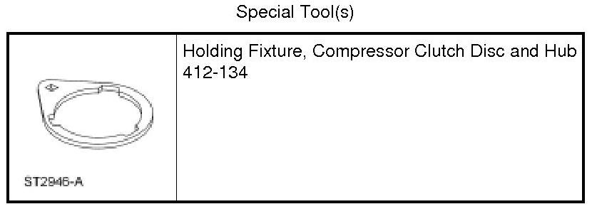 1. Hold the A/C clutch disc and hub with the Compressor Clutch Disc and Hub Holding Fixture.