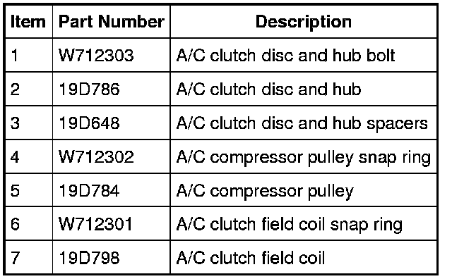 1. Visually inspect the A/C clutch disc and hub, A/C compressor pulley and A/C clutch field coil for damage.