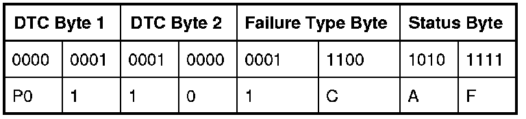 A list of failure type bytes is defined by SAE J2012 but is not described here because the PCM does not use the failure type byte.