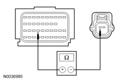 - Measure resistance between RCM C310b-27, circuit RR131 (VT/GY), harness side and first row driver side impact sensor C3057-2, circuit RR131 (VT/GY), harness side.