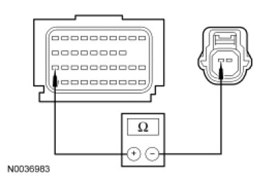 - Measure the resistance between second row driver side impact sensor C3059-2, circuit RR133 (GY/BN), harness side and the second row driver side impact sensor case ground.