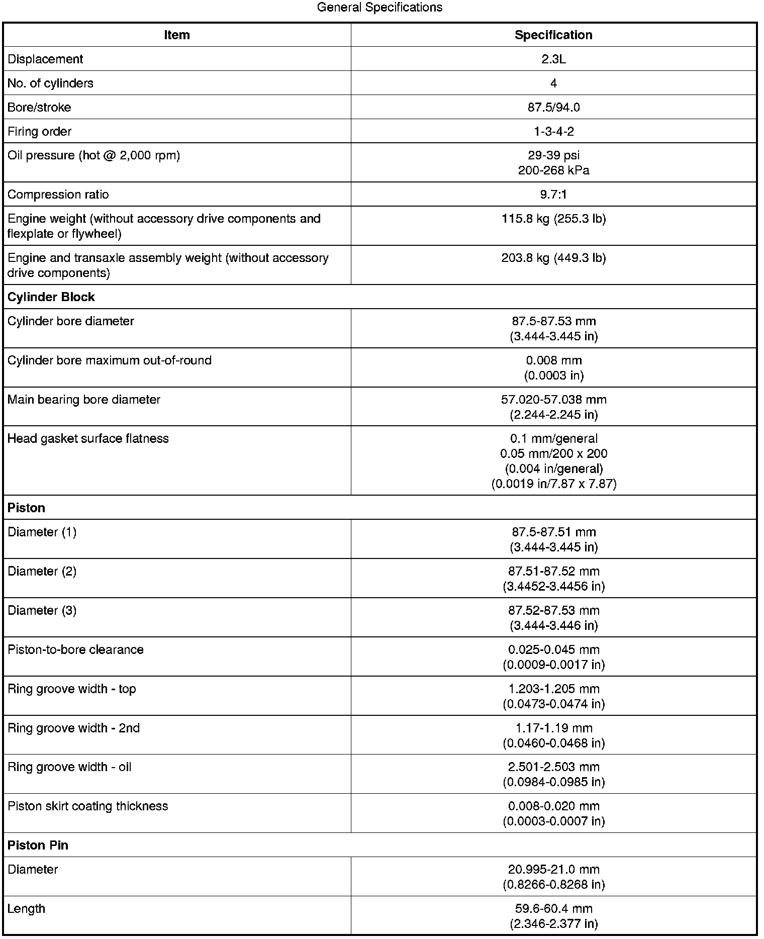 Fusion FWD L4-2.3L