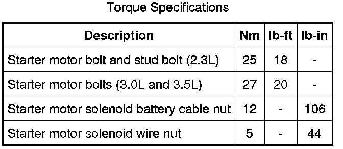 Starter Motor: Specifications