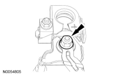 36. Remove the nut and disconnect the power feed wire from the battery terminal.