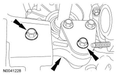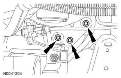 47. Remove the 3 transaxle control cable bracket bolts and position the cable aside.