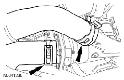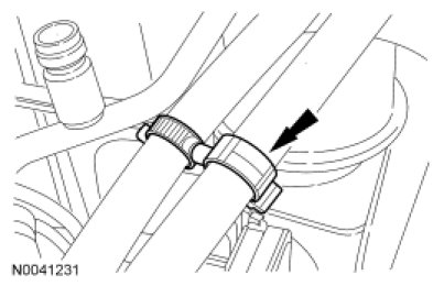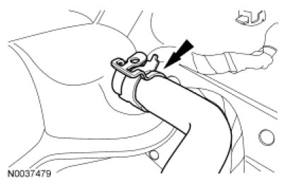 55. Detach the coolant hose retaining clip and position the coolant hose aside.