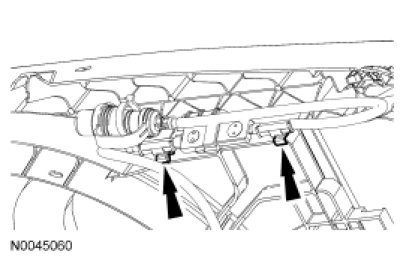 Release the 4 clips (1 shown) and slide the steering gear-to-dash seal off of the steering gear and into the passenger compartment.