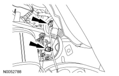 60. Disconnect the RH catalyst monitor sensor electrical connector and detach the wiring retainer.