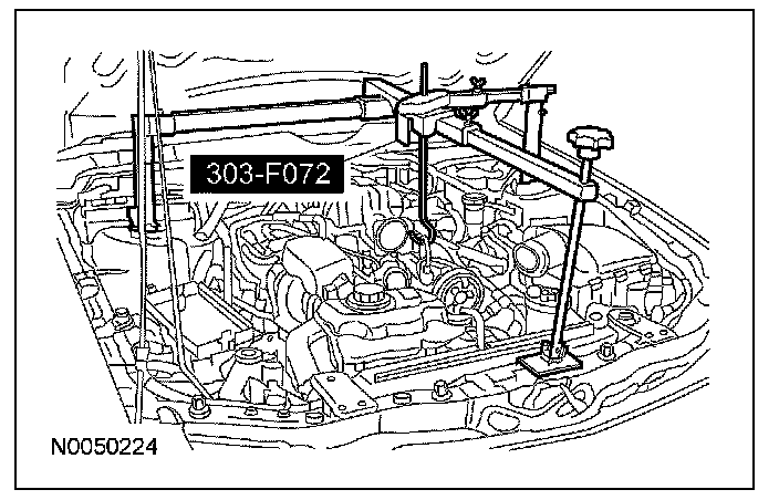 7. Using the Engine Support Bar and the Engine Lifting Bracket Set, raise and support the engine.