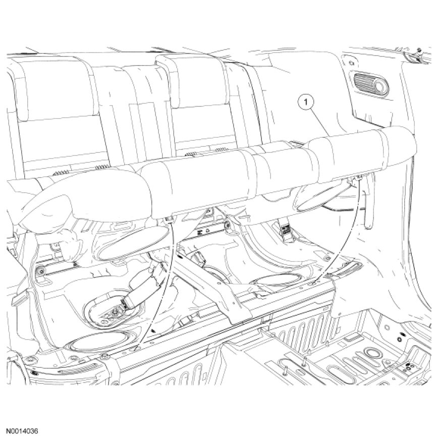 1. From under the front of the rear cushion assembly, push in each of the 2 seat cushion release tabs, lift up at the front and remove the rear cushion assembly.