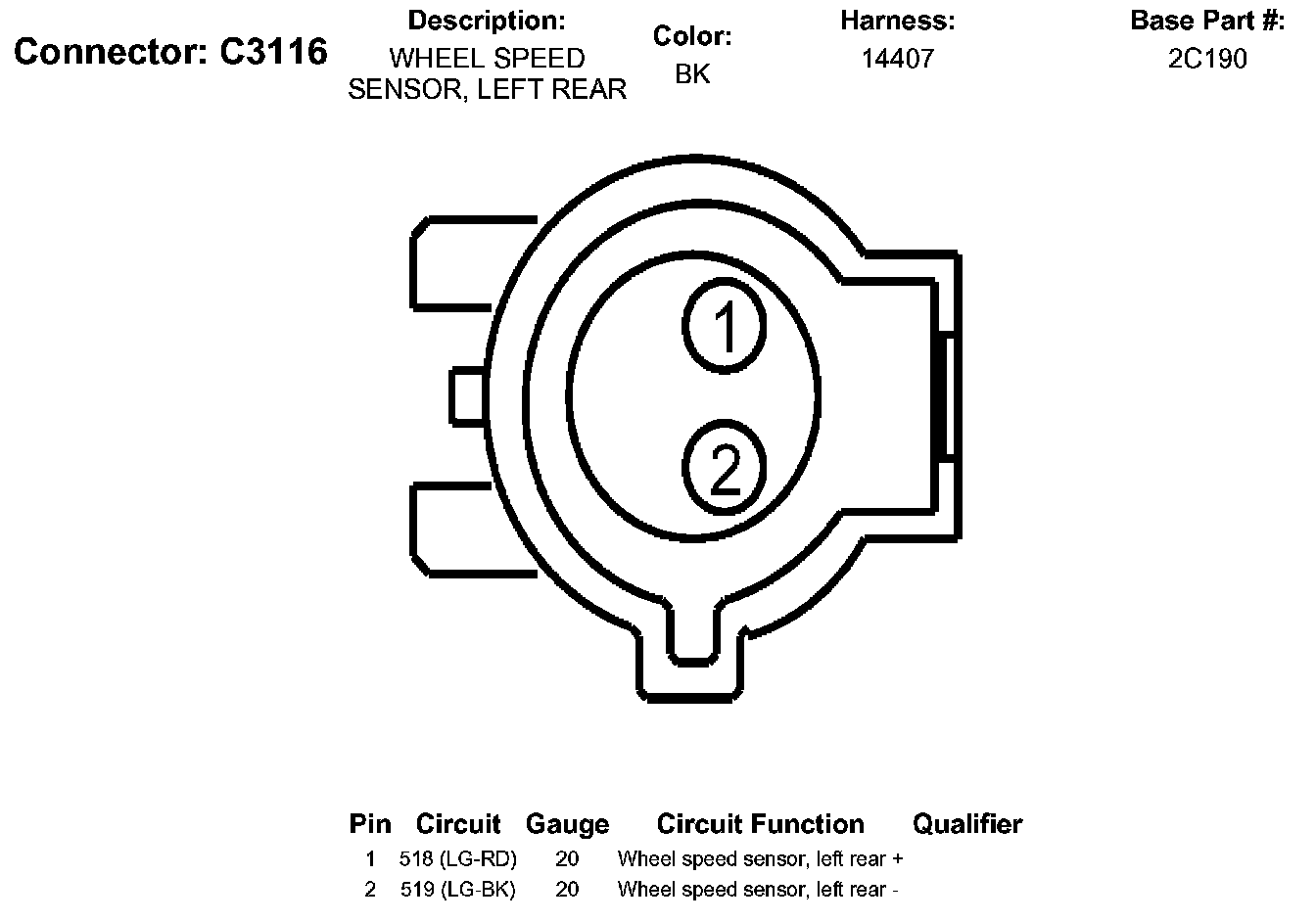 Wheel Speed Sensor, Left Rear