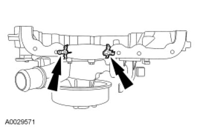 11. NOTE: Make sure that any coolant that drains into the front corners of the engine block cradle is removed.