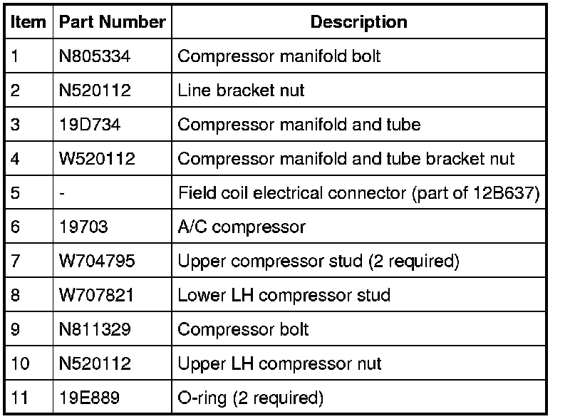 NOTE: A new A/C compressor may come equipped with an A/C clutch disc and hub, A/C compressor pulley and A/C clutch field coil already installed. If these components are not pre-installed, it will be necessary to transfer these parts from the old A/C compressor to the new compressor prior to installation of the A/C compressor if suitable for reuse.